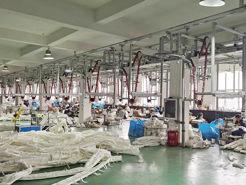 引進(jìn)德國、英國兩條先進(jìn)的濾料生產(chǎn)線,采用全自動(dòng)進(jìn)口縫合生產(chǎn)線和熱能粘合縫制濾袋,具有日產(chǎn)1萬平過濾材料、2000條各種濾袋生產(chǎn)能力